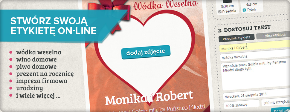 - Druk niskonakładowy – od 5 sztuk. Idealny na prezenty, domowe wino, domowe piwo oraz okazje i imprezy.